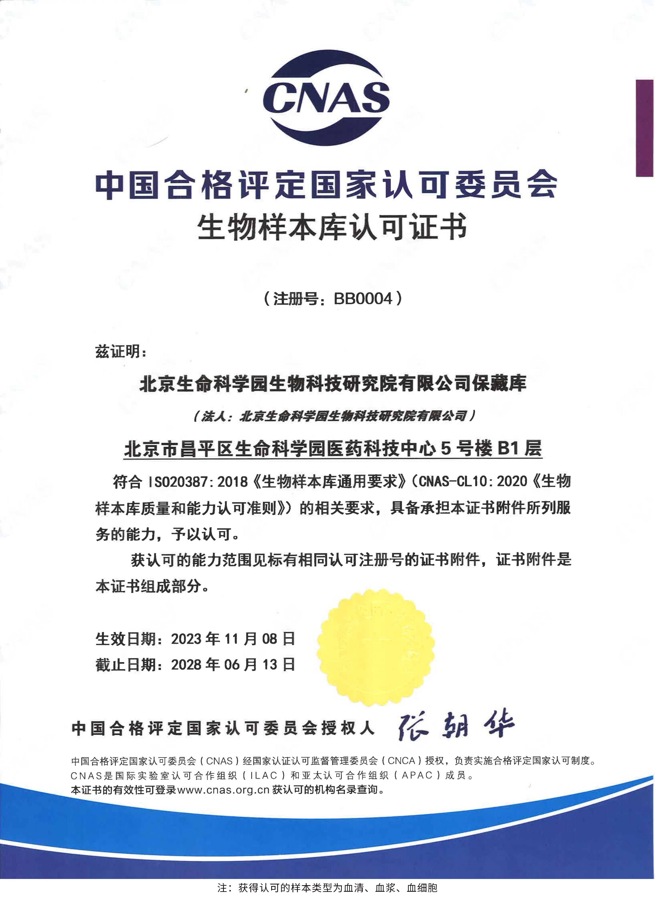 北京生命科學(xué)園生物科技研究院(以下簡(jiǎn)稱“北京生物樣本資源庫(kù)”)(Biobank of Life Science Park,簡(jiǎn)寫“BoLSP”)是一家由北京市科委和中關(guān)村生命科學(xué)園共同支持設(shè)立的第三方生物樣本庫(kù)公共服務(wù)平臺(tái),秉承北京重大疾病臨床數(shù)據(jù)和樣本資源庫(kù)(以下簡(jiǎn)稱“北京庫(kù)”)(Beijing Biobank of Clinical Resources,BBCR)十余年的發(fā)展成果,聚合眾多臨床樣本專家的專業(yè)共識(shí),致力于在生命科學(xué)、生物醫(yī)藥研究領(lǐng)域發(fā)揮銜接樣本資源持有者與研究者的橋梁作用,解決生物樣本資源開發(fā)上下游信息不對(duì)稱、資源共享困難等問(wèn)題。研究院在北京中關(guān)村生命科學(xué)園昌平園區(qū)建立了2000㎡生物樣本庫(kù),最大存儲(chǔ)規(guī)模達(dá)1000萬(wàn)份。研究院遵循CNAS-CL10:2020《生物樣本庫(kù)質(zhì)量和能力認(rèn)可準(zhǔn)則》,同時(shí)結(jié)合北京庫(kù)過(guò)去十年的工作經(jīng)驗(yàn)與教訓(xùn),建立了一套完善的生物樣本保藏質(zhì)量管理體系,從人、機(jī)、料、法、環(huán)、控多個(gè)角度,實(shí)現(xiàn)生物樣本保藏過(guò)程的全面質(zhì)量控制,先后獲得國(guó)家科技部頒發(fā)的人類遺傳資源保藏行政許可證書和中國(guó)合格評(píng)定國(guó)家認(rèn)可委員會(huì)(China National Accreditation Service for Conformity Assessment,CNAS)頒發(fā)的“CNAS認(rèn)可證書”。